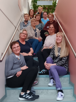 Ruovedellä Honkalakodissa alkoi kinestetiikan peruskurssi 1.9.2025. Kouluttajana kurssilla toimii Jaana Ahonen (edessä oikealla) ja hänen apunaan on kouluttajakokelas Päivi Vierula (edessä vasemmalla).